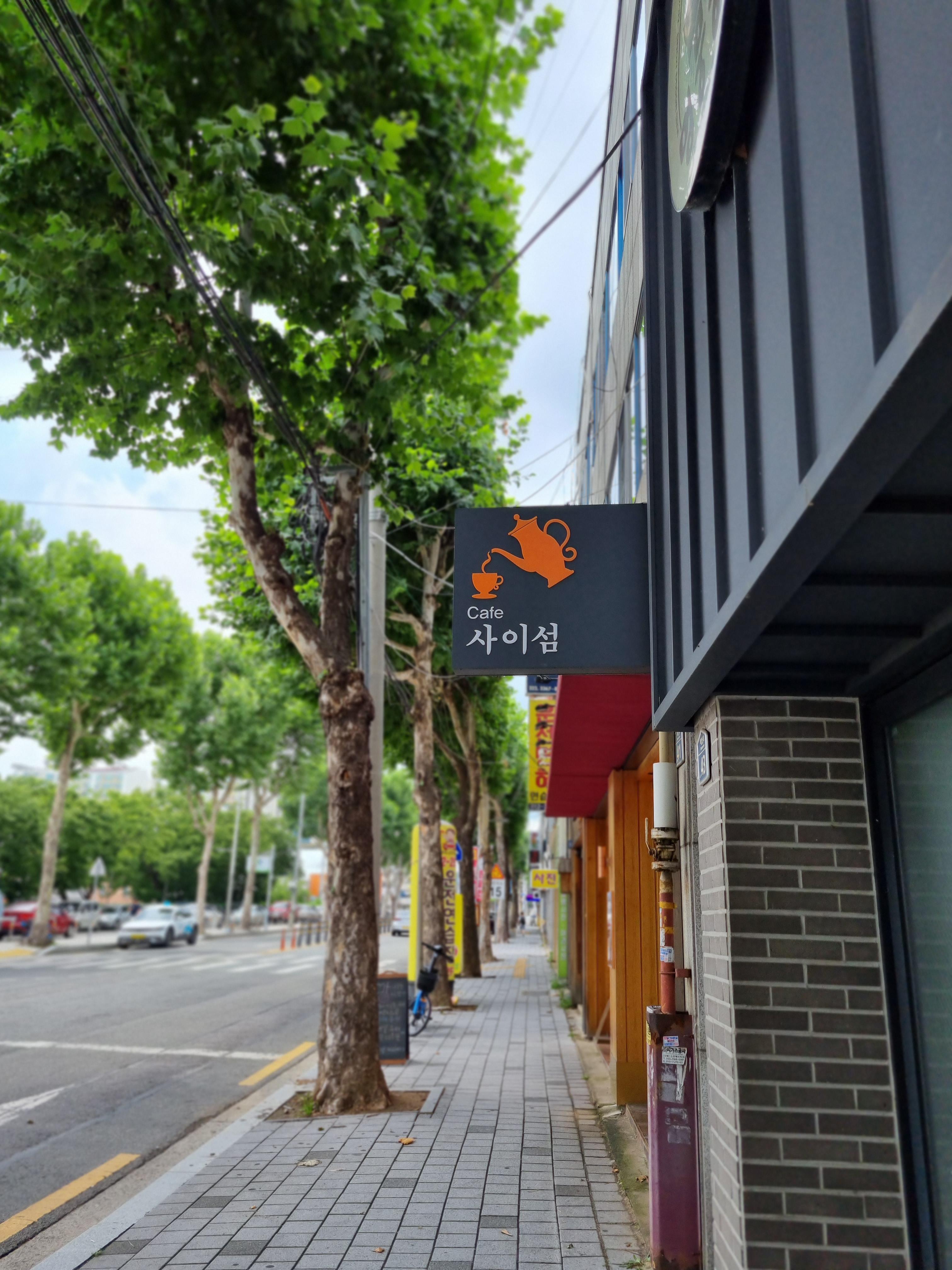 카페 입구에는 궁서체로 적힌 사이섬이라는 글씨가 참 인상적입니다.